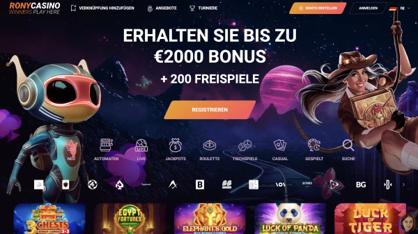 Toernooien zijn ook beschikbaar voor slot- en quick-play fans. Het Rony Weekly Tournament betaalt de top 10 spelers uit met prijzen van €10 tot €50. Alien Micro Tournament geeft elk 30 free spins aan de top 3 winnaars. Tournament Happy Newbie is gericht op nieuwe accounts, waarbij 15 winnaars een pool delen van 10–30 free spins per persoon.