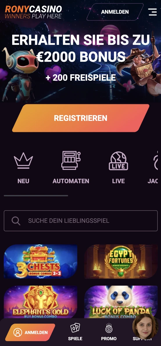 Mobiel casinospelen betekent dat je met een telefoon of tablet toegang hebt tot casinospellen om echt geld en bettingfuncties via een platform in de browser. Met RonyCasino Casino heb je geen computer nodig om de lobby te bekijken, promoties te claimen of stortingen en opnames te beheren. Je gebruikt simpelweg je normale mobiele browser en logt in op je account.